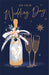 Celebrate your anniversary with this sophisticated UK Greetings card featuring elegant dark tones. The design showcases a champagne bottle and glasses, perfectly capturing the spirit of your special wedding day with refined style and grace.