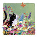 This sophisticated UK Greetings open card features a serene cat nestled among flowers, intently watching a delicate butterfly. Its elegant design offers a graceful and versatile way to convey thoughtful sentiments for any occasion.
