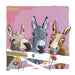 This sophisticated UK Greetings open card features three donkeys standing by a gate, set against a gentle pink-toned background. Its elegant and charming design makes it a versatile choice for conveying warm wishes on any occasion.