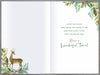 Send festive joy to Dad with this playful Christmas card from UK Greetings. Featuring a charming deer nestled inside a holly berry wreath in classic green and gold tones, it’s a delightful way to share warm holiday wishes.