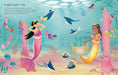 Swim with mermaids as they explore a mysterious cave, find sunken treasure, meet a mer-prince and play with creatures in their mystical underwater world. Add the stickers to dress the mermaids and bring the colourful scenes to life.