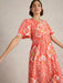 White Stuff Women's Lucy Midi Short Sleeve Dress In Coral Print