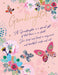 Celebrate your granddaughter’s birthday with this elegant card from Words & Wishes. Featuring soft pastel pink tones, delicate flowers, and butterflies, it conveys a heartfelt message with grace and warmth, perfect for a special day.