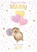 Celebrate your mum’s birthday with this elegant card from Words & Wishes. Featuring a happy hedgehog carrying flowers surrounded by hearts being lifted by heart-shaped balloons, it combines charming imagery with a sophisticated design to convey your warmest wishes.