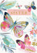 Celebrate your sister’s birthday with this elegant card from Words & Wishes. Featuring vibrant pastel butterflies and delicate foliage, it offers a sophisticated and graceful way to send your warmest wishes on her special day.
