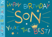 This refined birthday card from Words n Wishes features vibrant blue tones with bold lettering that reads "You're the Best." Its elegant design offers a tasteful and heartfelt way to celebrate your son’s special day.